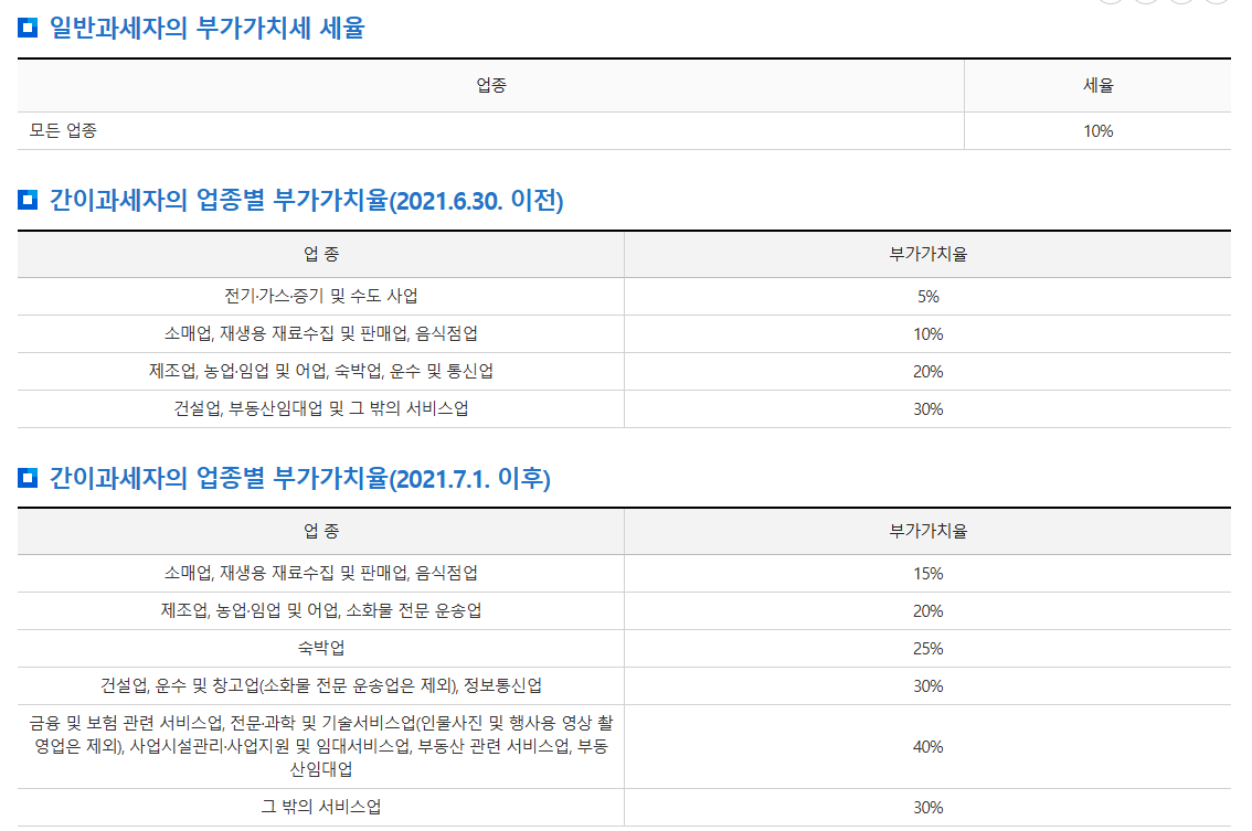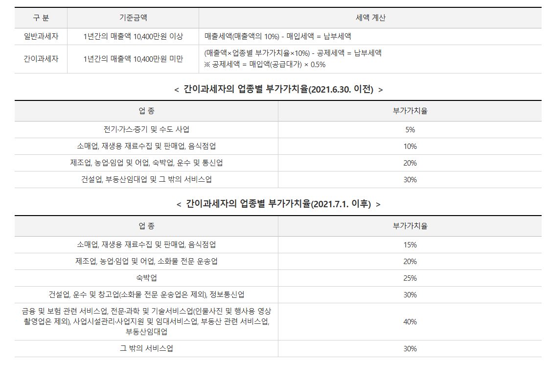 - 피부미용업 및 기타 미용업은 면적에 관계없이 간이과세 적용