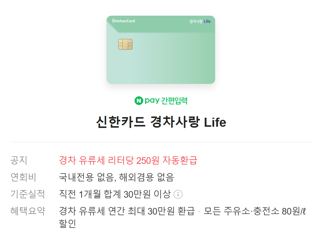 1. 신한카드 경차사랑 Life