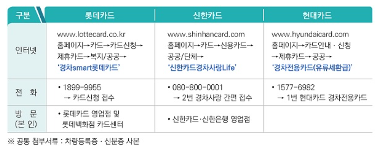 현재 유류세 환급카드를 발급하는 주요 카드사는 신한카드, 롯데카드, 현대카드 세 곳입니다. 각 카드의 혜택을 살펴보고, 본인에게 가장 적합한 카드를 선택해 보세요.
