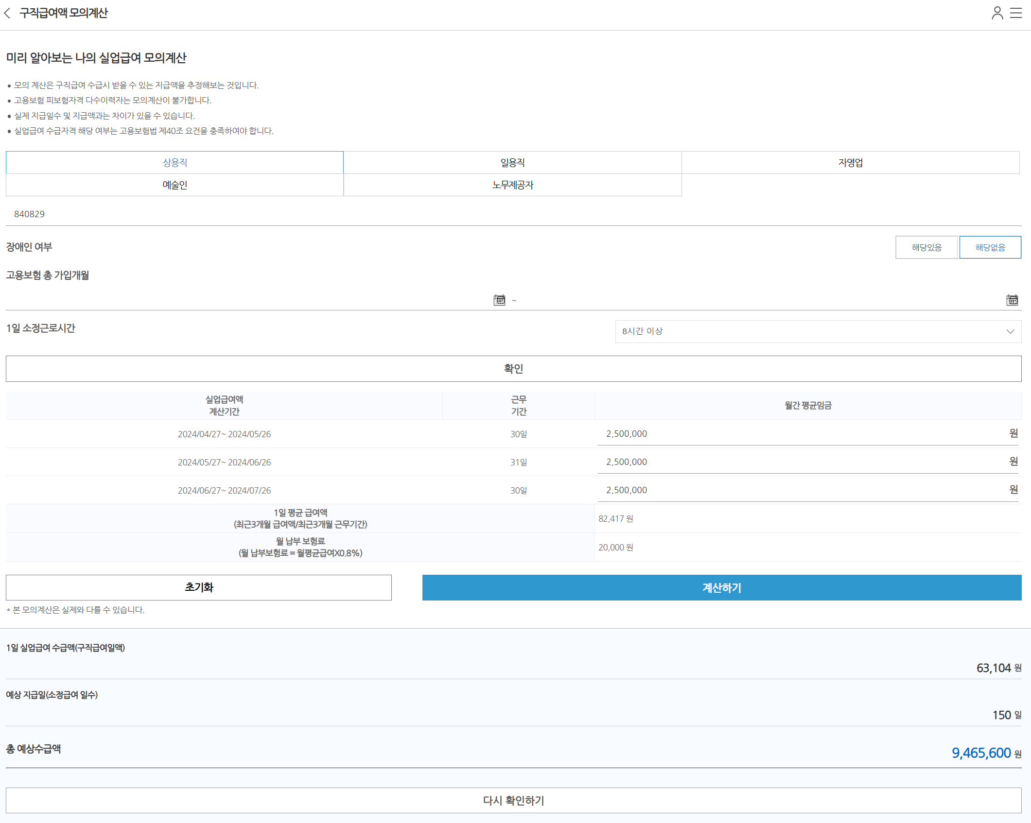 고용보험 실업급여 총 예상수급액 9,465,600원