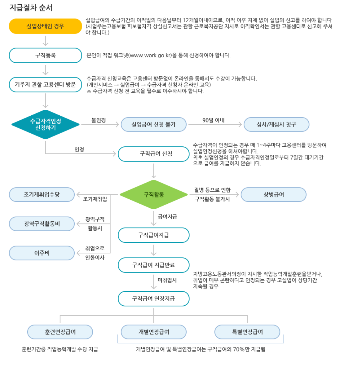 실업급여 중 구직급여는 퇴직 이후 다음날로부터 12개월이 경과하면 소정급여일수가 남아있어도 더 이상 지급받을 수 없습니다. 실업급여 신청 없이 재취업할 경우 지급받을 수 없으므로 퇴직 즉시 신청해야 합니다.