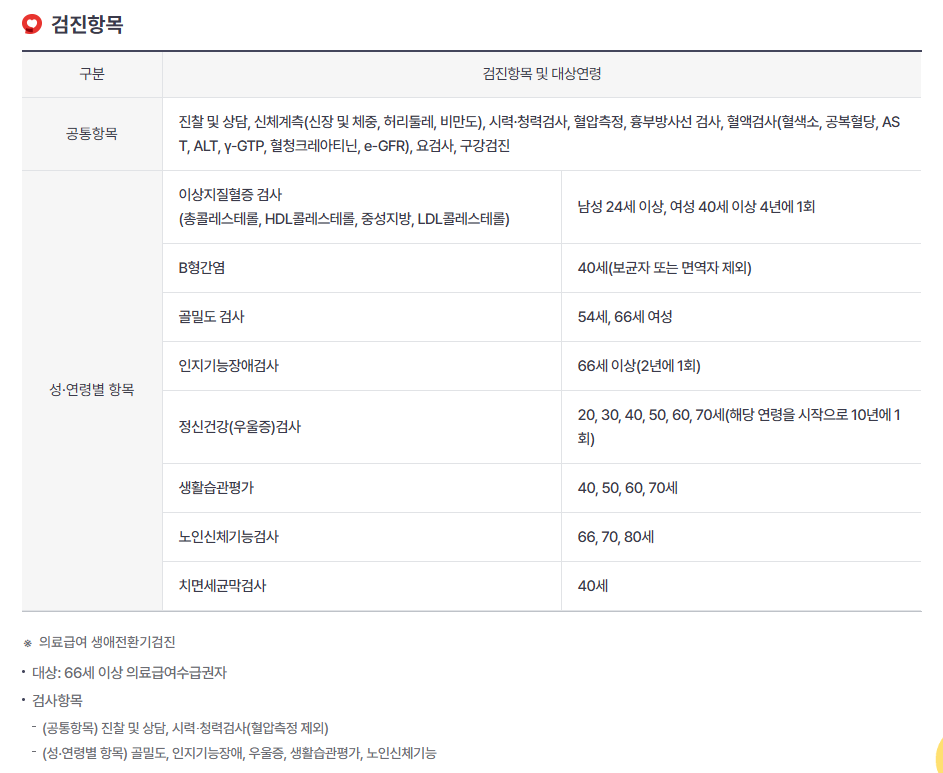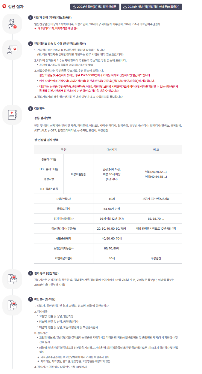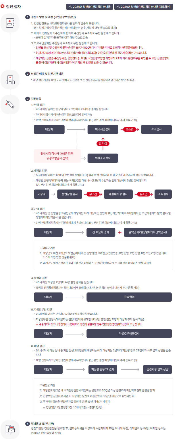 - 국민건강보험공단 홈페이지 또는 검진기관 홈페이지에서 예약 가능
