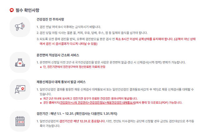 - 건강검진은 의무가 아닌 선택 사항입니다.