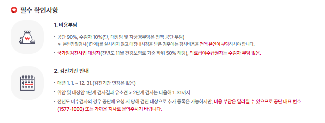 - 본인의 대상 여부 및 검진 항목 확인