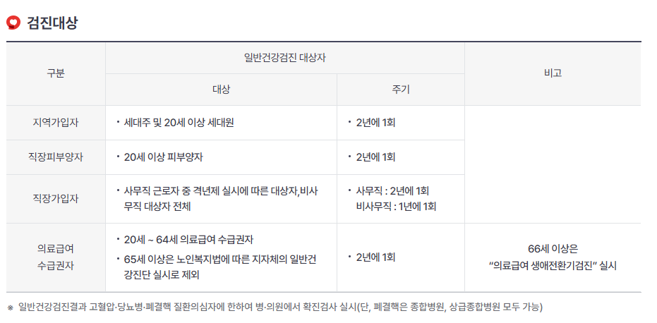 - 대상: 건강보험 가입자, 피부양자, 의료급여 수급자