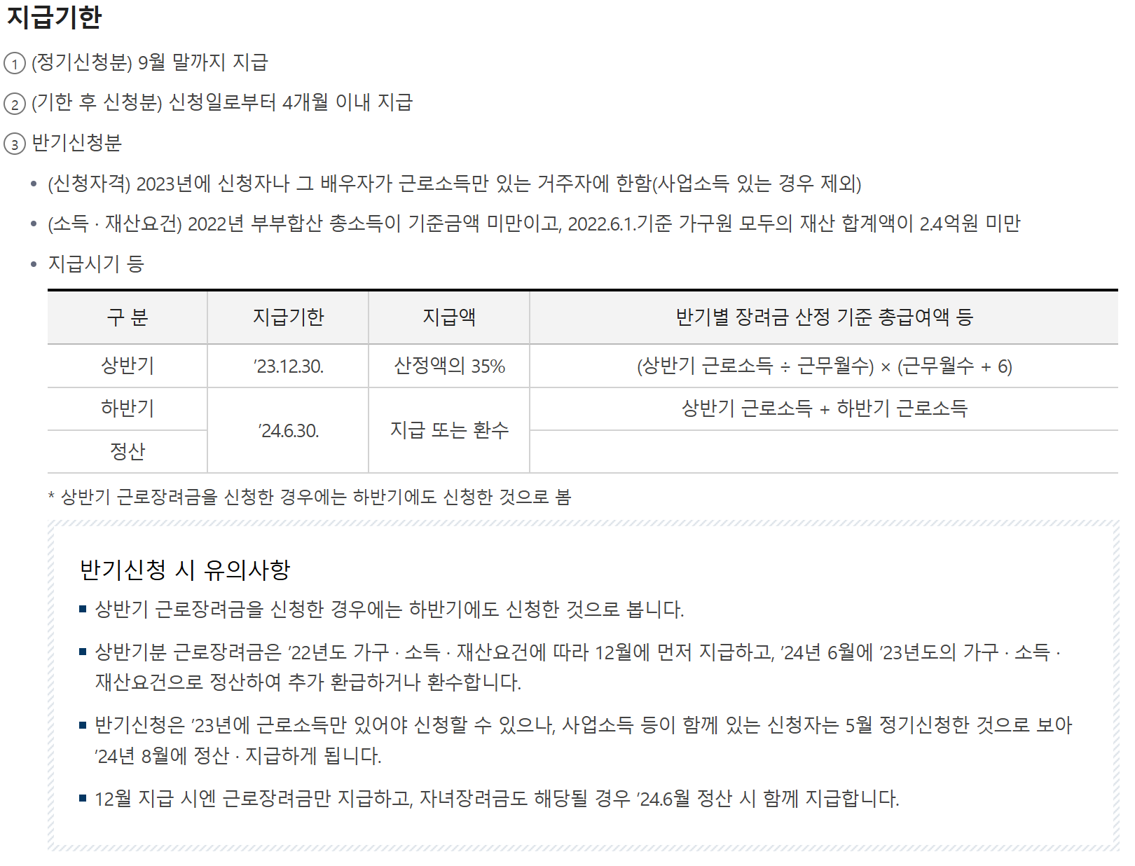 - 지난해 상반기(1~6월) 근로소득 : 해당연도 9월 신청 -> 해당연도 12월 지급