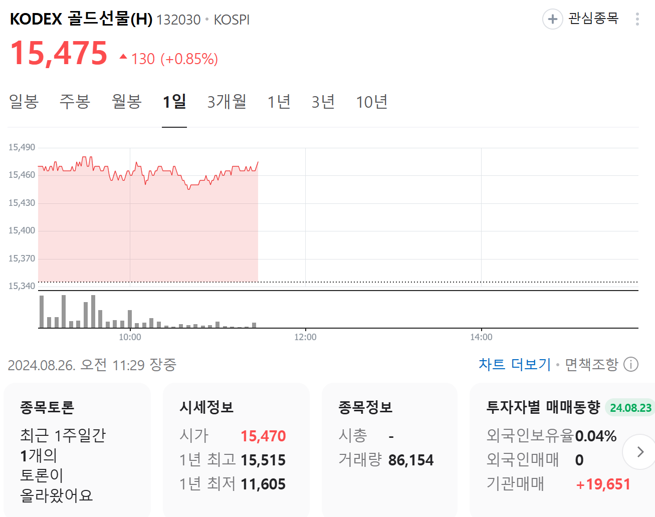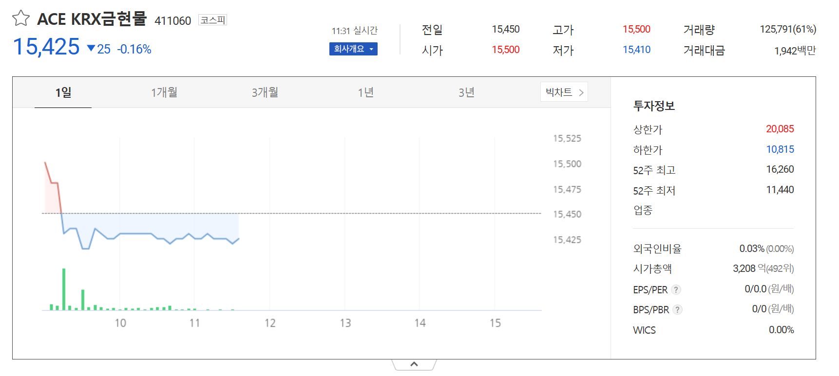 - KRX 금 시장에서 1g 단위로 거래되기 때문에 소액 투자가 가능합니다.