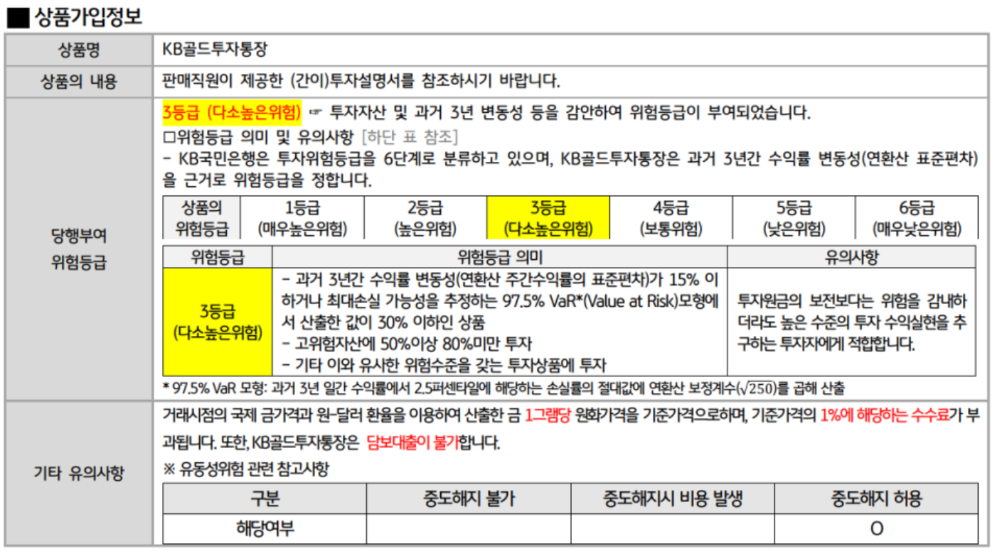 - 통장 개설로 금투자방법을 이용할 경우 금을 매도 후 현금이나 금으로 수령할 때 기준 가격의 1%에 가까운 수수료가 부과됩니다.