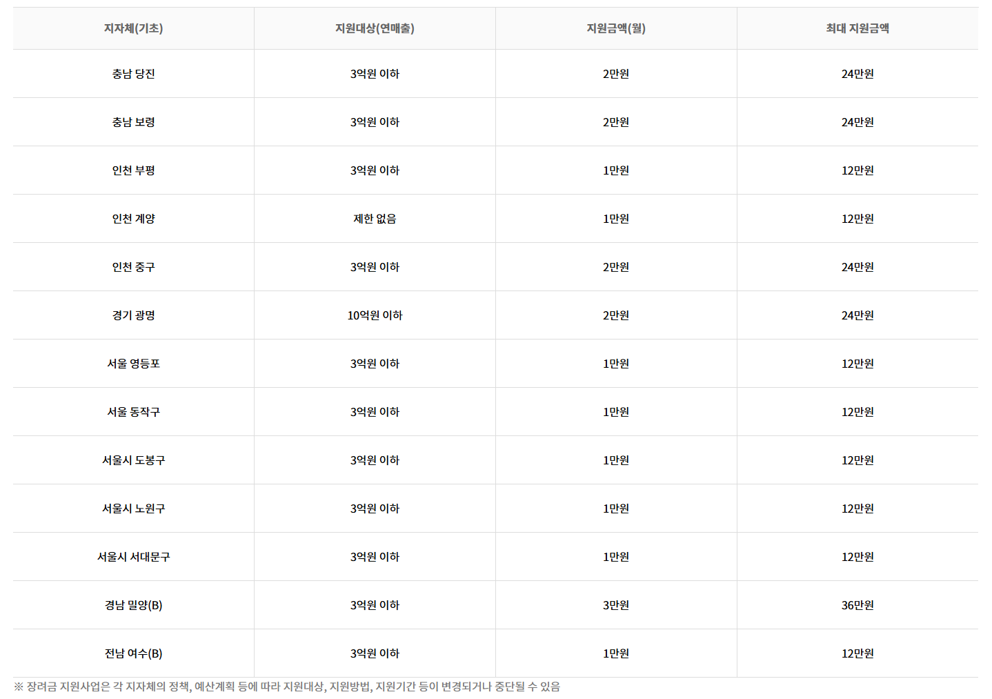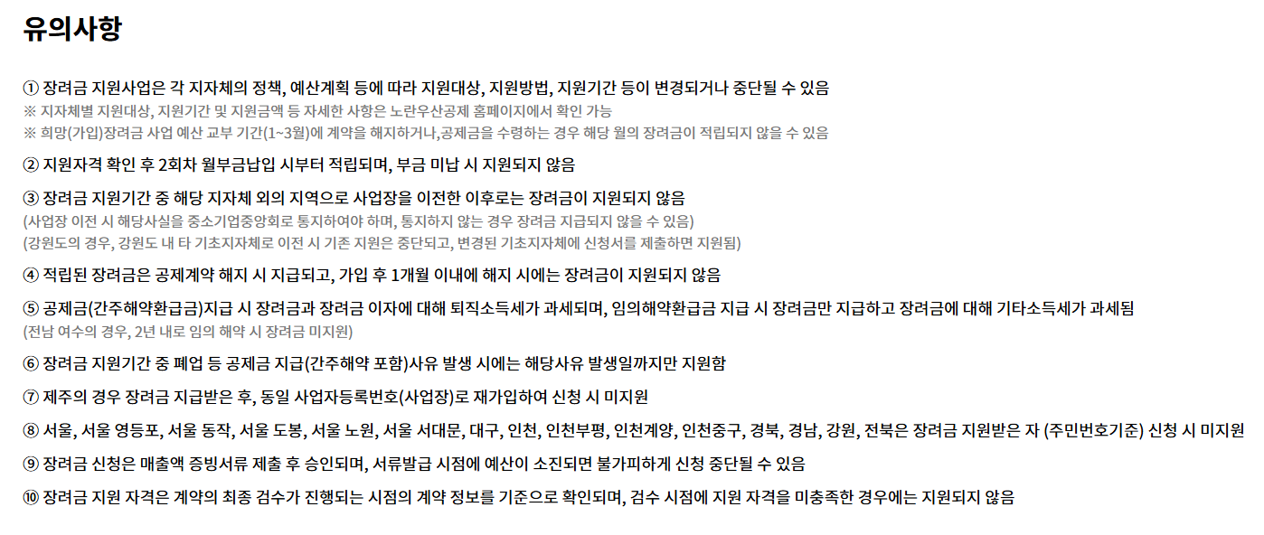 - 노란우산공제 희망장려금 지원사업은 각 지자체의 정책, 예산계획 등에 따라 지원대상, 지원방법, 지원기간 등이 변경될 수 있습니다.