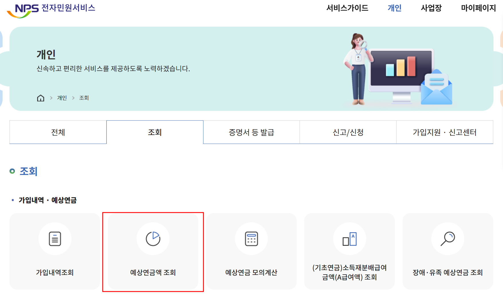 - 국민연금 납부액 조회를 해보셨다면 해당 화면에서 바로국민연금 예상수령액도 확인 가능합니다.