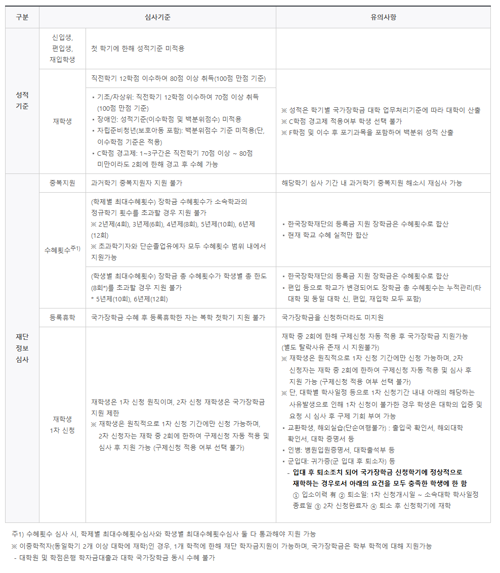 국가장학금 유형별 기준