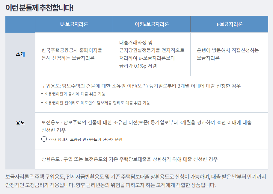 | 항목 | 디딤돌대출 | 보금자리론 |