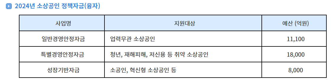 - 소상공인 정책자금 스마트자금 : 스마트 소상공인, 혁신형 소상공인, 로컬크리에이터 등