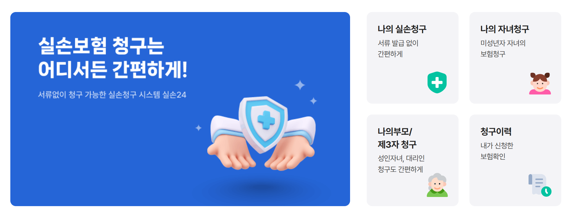 - 미성년 자녀나 부모님의 보험금 청구가 필요한 경우, 공공 마이데이터를 통해 자녀의 진료내역을 부모가 대신 청구할 수 있습니다.