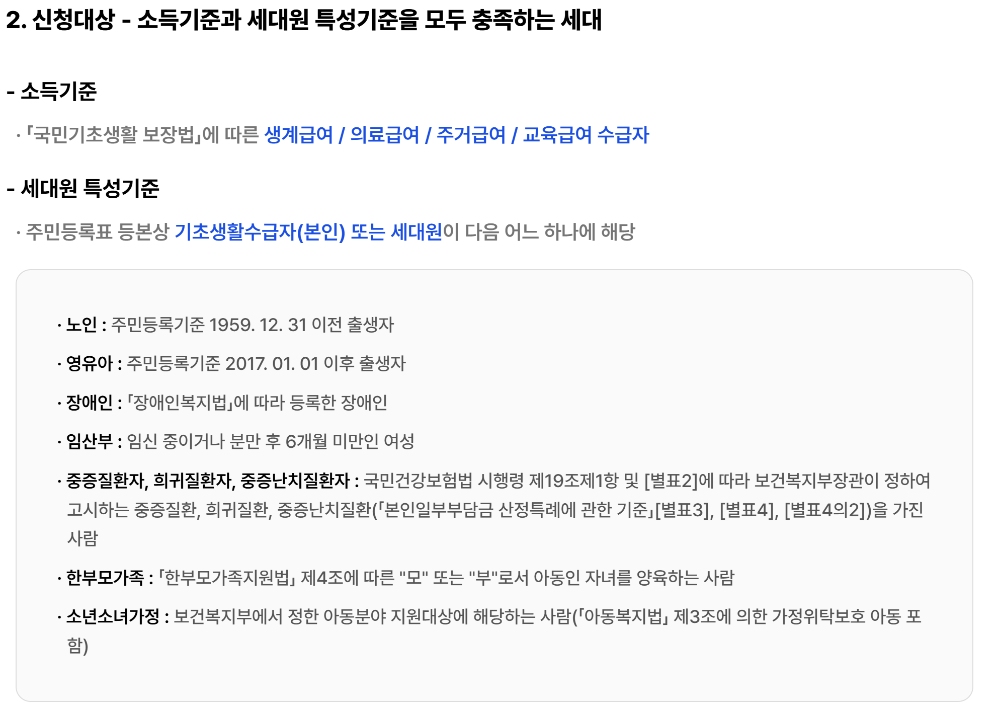 - 직권신청 : 관할 지자체 담당 공무원이 유선(전화연결) 또는 개별접촉 등을 통해 신청 대상자의 동의를 구해서 직권 신청