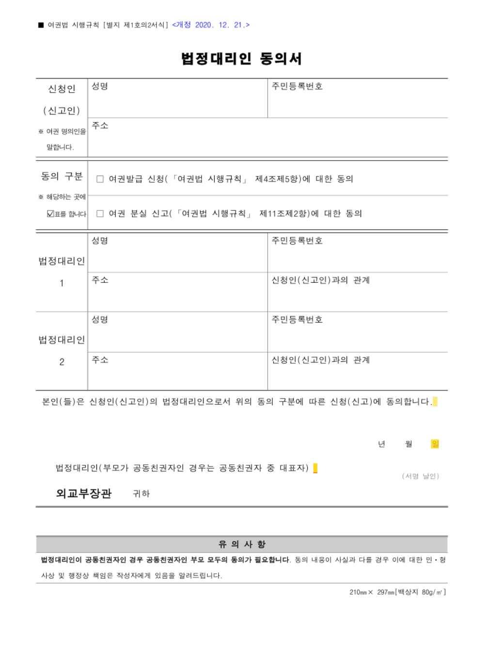 - 여권발급신청서