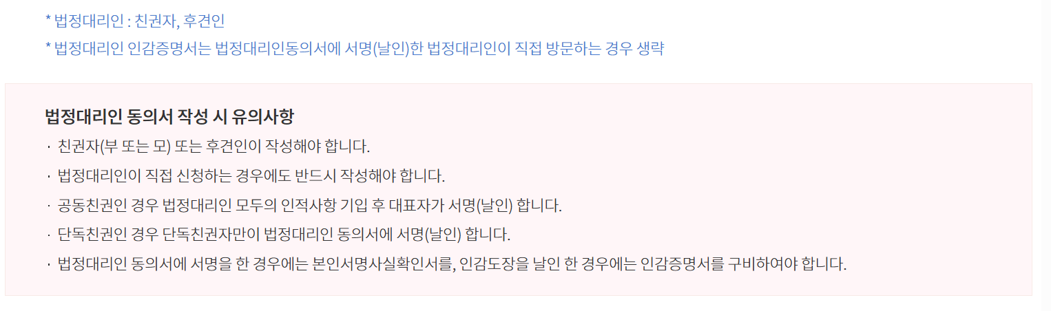 - 법정대리인 인감증명서 또는 본인서명확인서