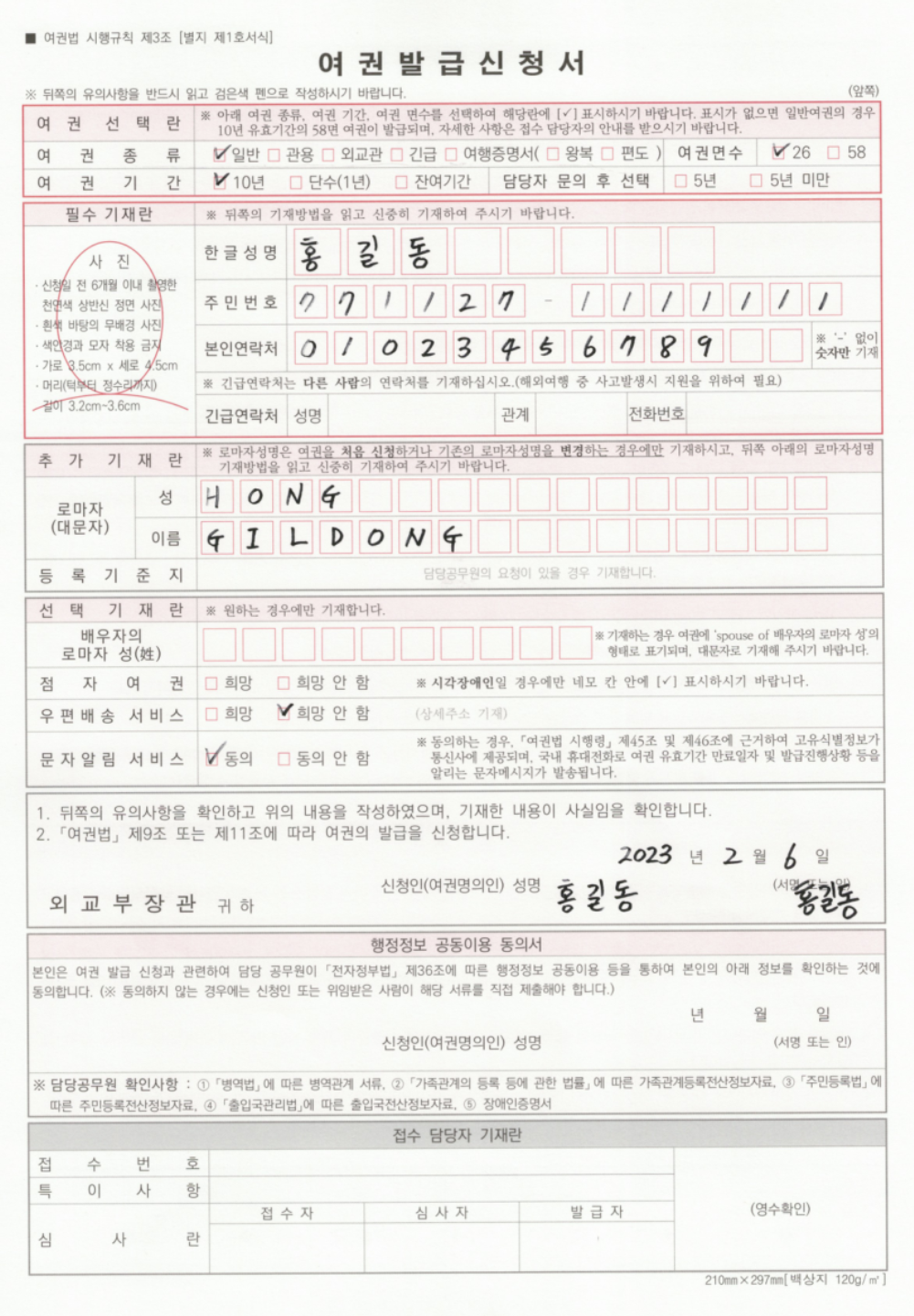 - 여권발급신청서 (작성 예시 참고)