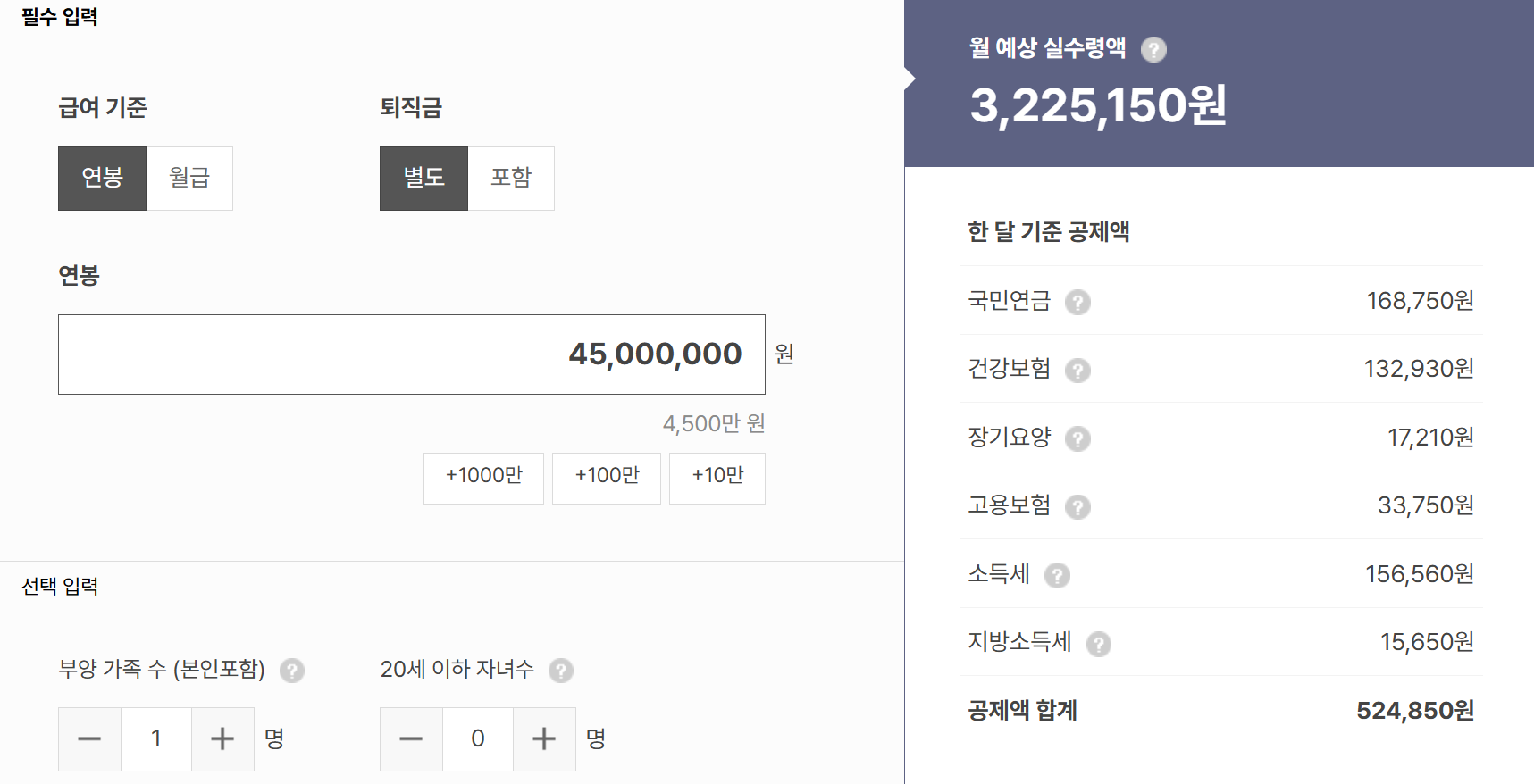 연봉 계산기 연봉 실수령액 월급 실수령액
