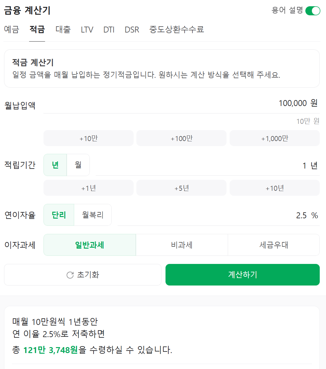 - 정기적금: 정해진 금액을 매달 납입하는 방식으로 이자가 계산됩니다. 목돈을 한 번에 예치하기 어렵다면 매달 조금씩 모아가는 이 방식이 유리합니다.