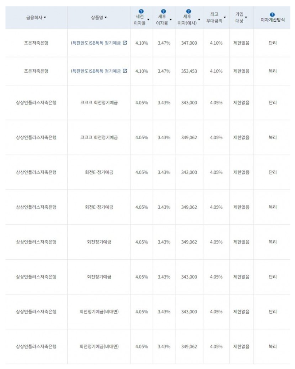 - HB저축은행 비대면 정기예금: 최고 연 4.05%