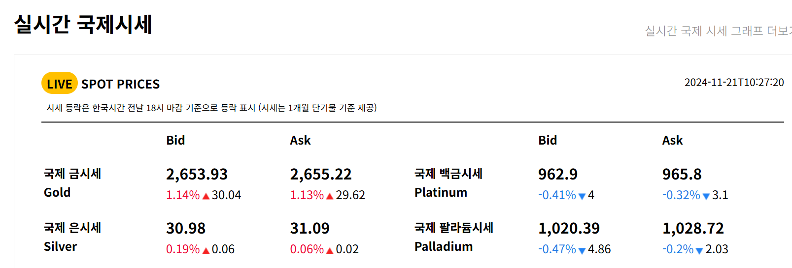 - 24K 순금: $2,652.85로 전일 대비 약 0.831% 상승.