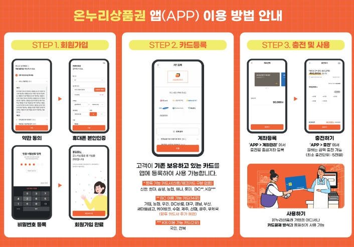 - 보유카드 등록 후 가맹점에서 결제 시 온누리상품권 충전금 자동 차감 방식