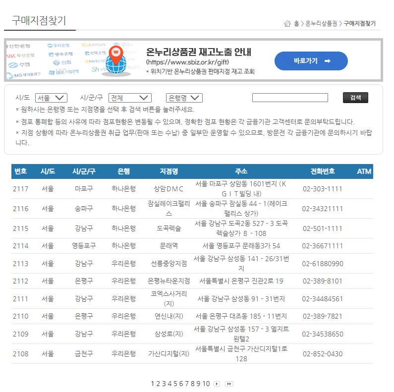- 5천원부터 10만원까지 권종 선택 가능 (복수 선택 가능)