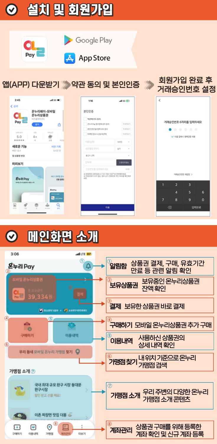 - 온누리페이앱, 비플페이 앱에서 온누리 모바일 상품권 구입 후 가맹점의 QR코드를 촬영한 후 금액을 입력 및 전송하여 결제