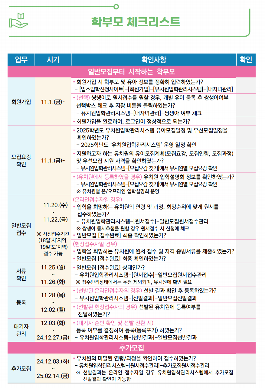 유치원 모집 일정 확인하기