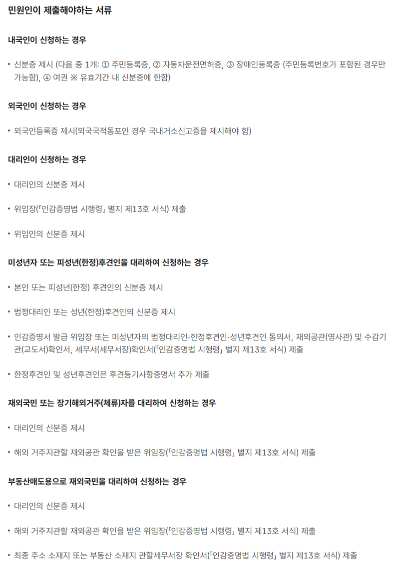 - 2025년 1월부터 법원과 주민센터가 등기 정보를 공유하여 부동산 등기 시 인감증명을 별도로 할 필요가 없음