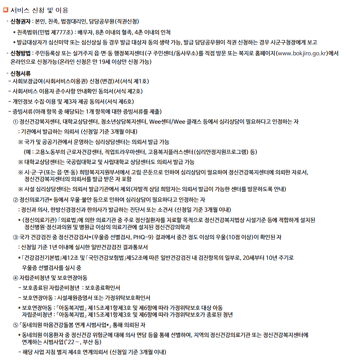 - 정신의료기관 등에서 우울·불안 등으로 상담이 필요하다고 진단받은 자
