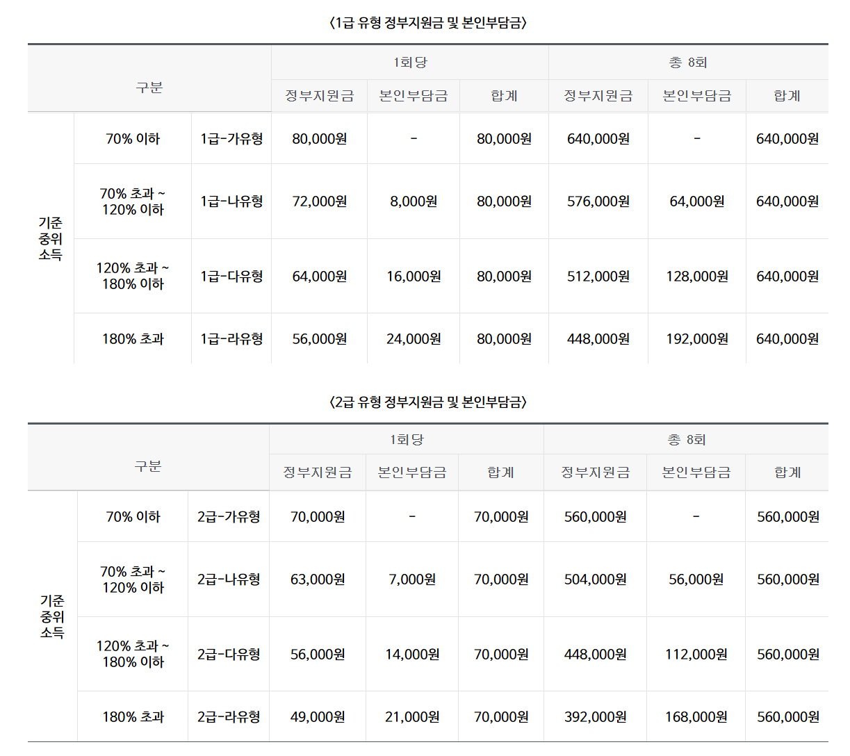 - 본인 부담금: 소득 수준에 따라 상담 서비스 비용의 0~30%가 발생하며, 본인 부담금은 최소 56,000원에서 최대 192,000원입니다.