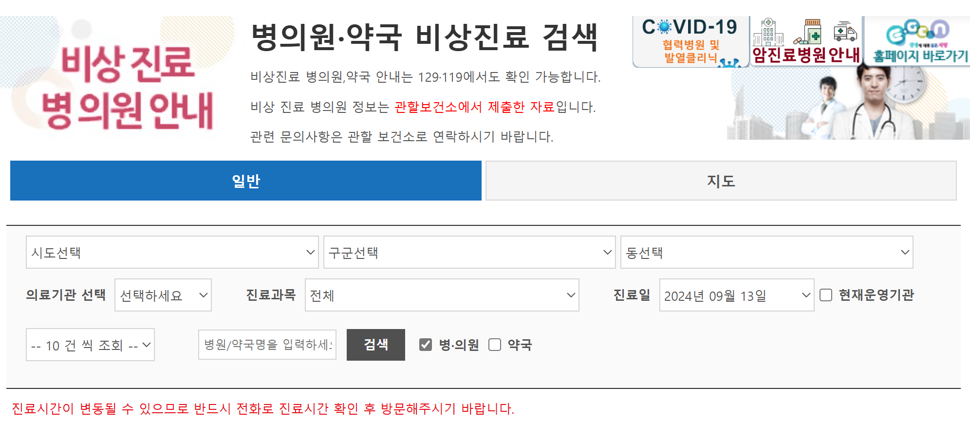 추석 연휴 응급 병원 찾기 중증 전담 응급실 운영 안내