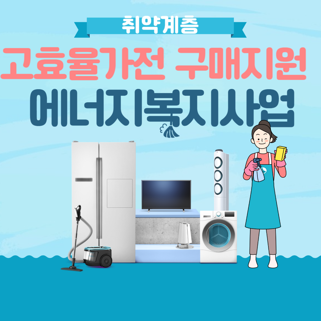 취약계층 고효율가전 구매지원은 사회적으로 배려 계층을 대상으로 고효율 가전제품의 구입비용을 가구당 한도 30만 원의 일정 비율로 지원하는 제도입니다. 취약계층 에너지복지사업은 저소득층, 장애인 등 전기요금 복지할인 가구를 대상으로 지원합니다. 2024년 3월 25일부터 시행되어 2024년 1월 1일부터 2024년 12월 31일 내 구매한 제품을 2024년 3월 25일부터 신청 가능하고 2024년 12월 31일까지 신청해야 합니다. 구매 시 온라인 및 오프라인에서 가능하고 반드시 에너지소비효율등급 라벨이 있어야 지원 가능합니다.