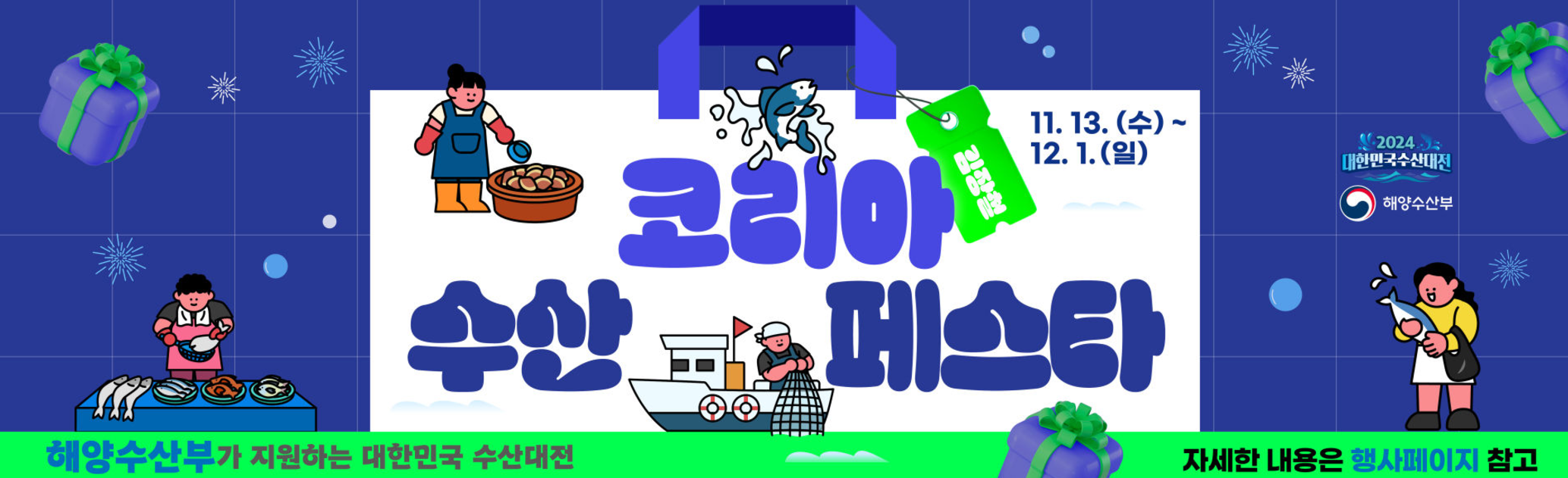 코리아수산페스타는 매년 열리는 대규모 수산물 할인 행사로, 신선한 해산물과 김장 재료를 저렴한 가격에 구매할 수 있는 특별한 축제입니다. 특히 김장철을 맞아 천일염, 새우젓, 멸치액젓 등 필수 재료는 물론 다양한 수산물을 한 자리에서 만나볼 수 있어 큰 인기를 끌고 있습니다.