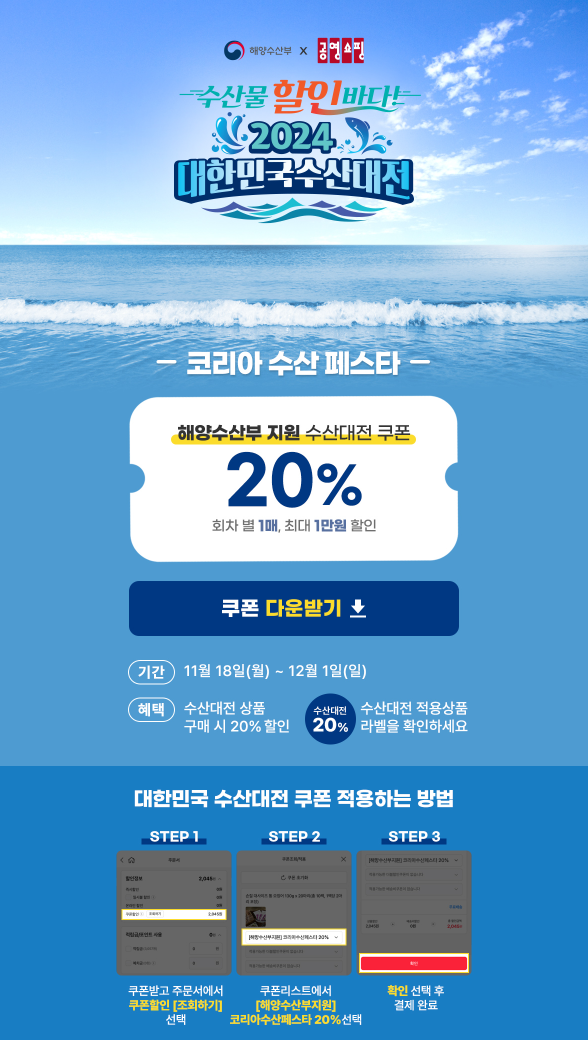 코리아수산페스타는 김장철을 맞아 신선한 재료를 합리적인 가격으로 제공하며, 소비자들의 경제적 부담을 덜어주는 동시에 국산 수산물 소비를 촉진하는 행사입니다. 이번 기회를 통해 맛있는 김치를 준비하고 가족과 함께 따뜻한 겨울을 준비해 보세요.