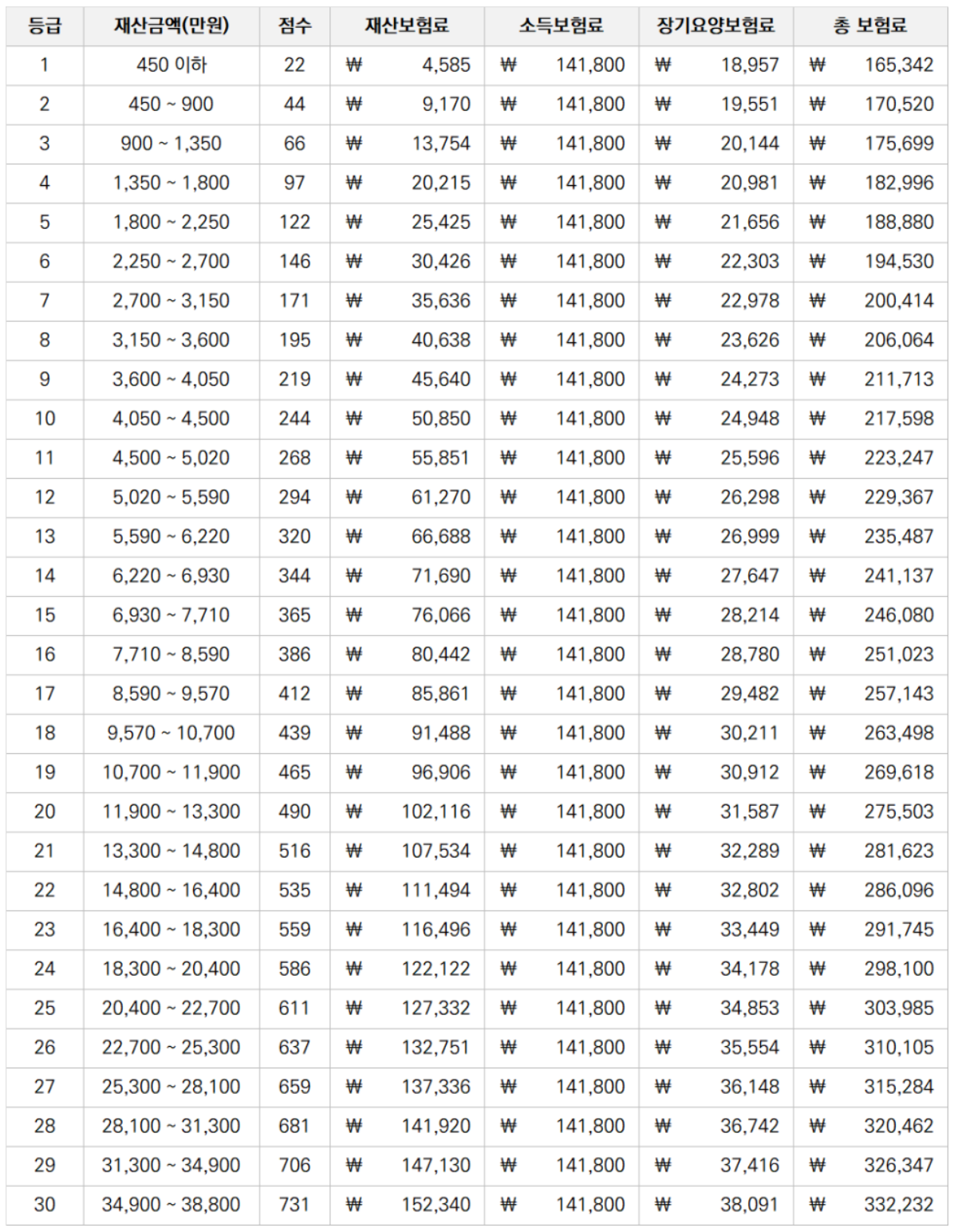 지역가입자의 건강보험료는 소득보험료 + 재산보험료로 계산됩니다.