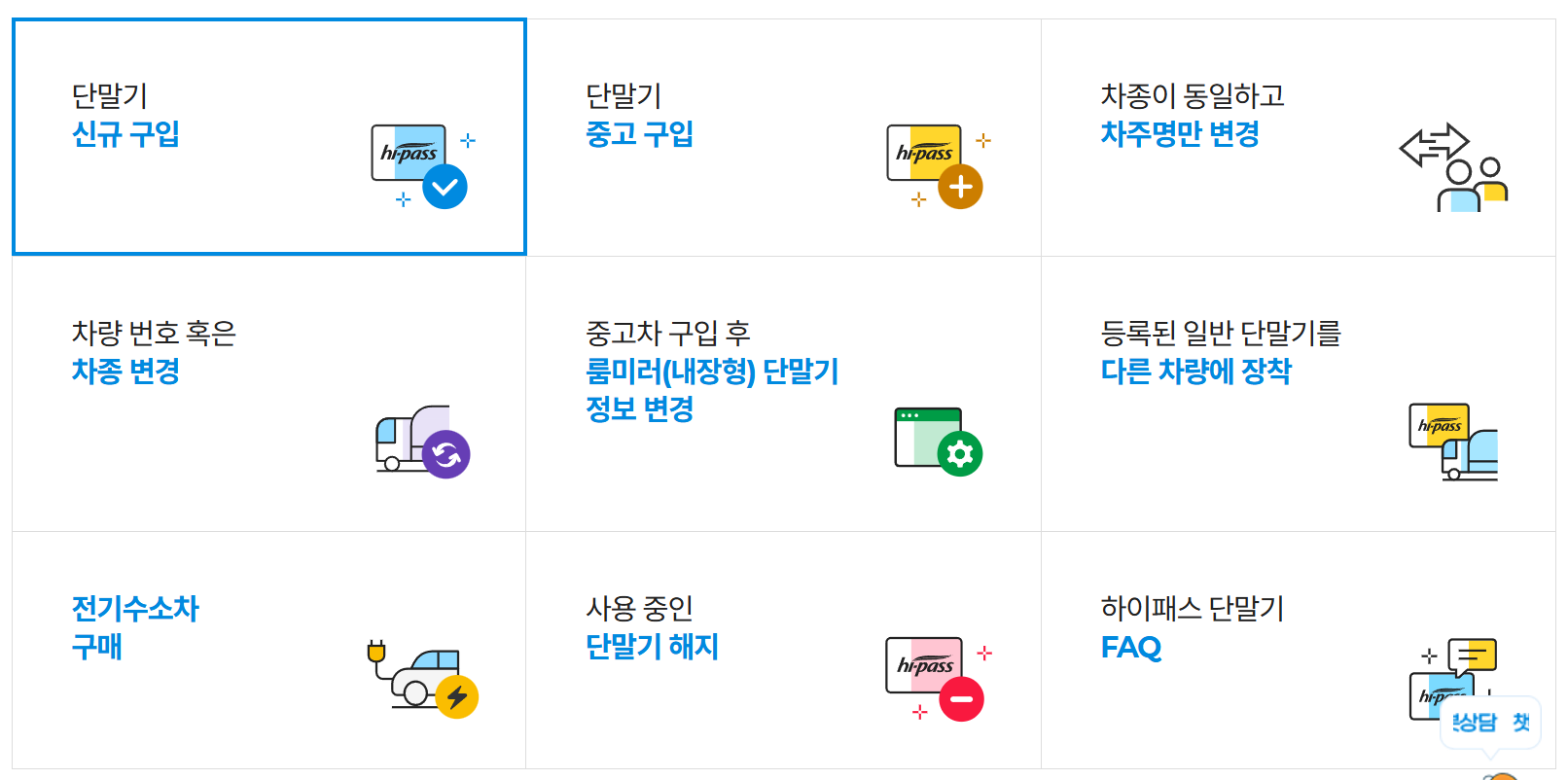 ※ 사이트에서는 하이패스 단말기 등록, 차종 변경, 명의 변경 등 다양한 서비스를 제공.