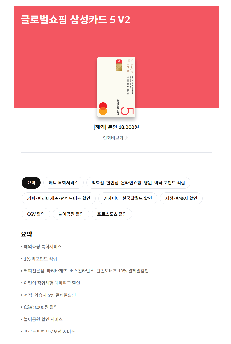 - 해외 혜택: 해외 결제 시 1% 청구 할인.
