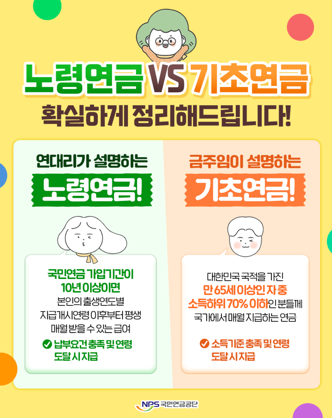 - 기초연금: 소득과 재산 조건을 충족하는 어르신들에게 지급하는 복지 연금