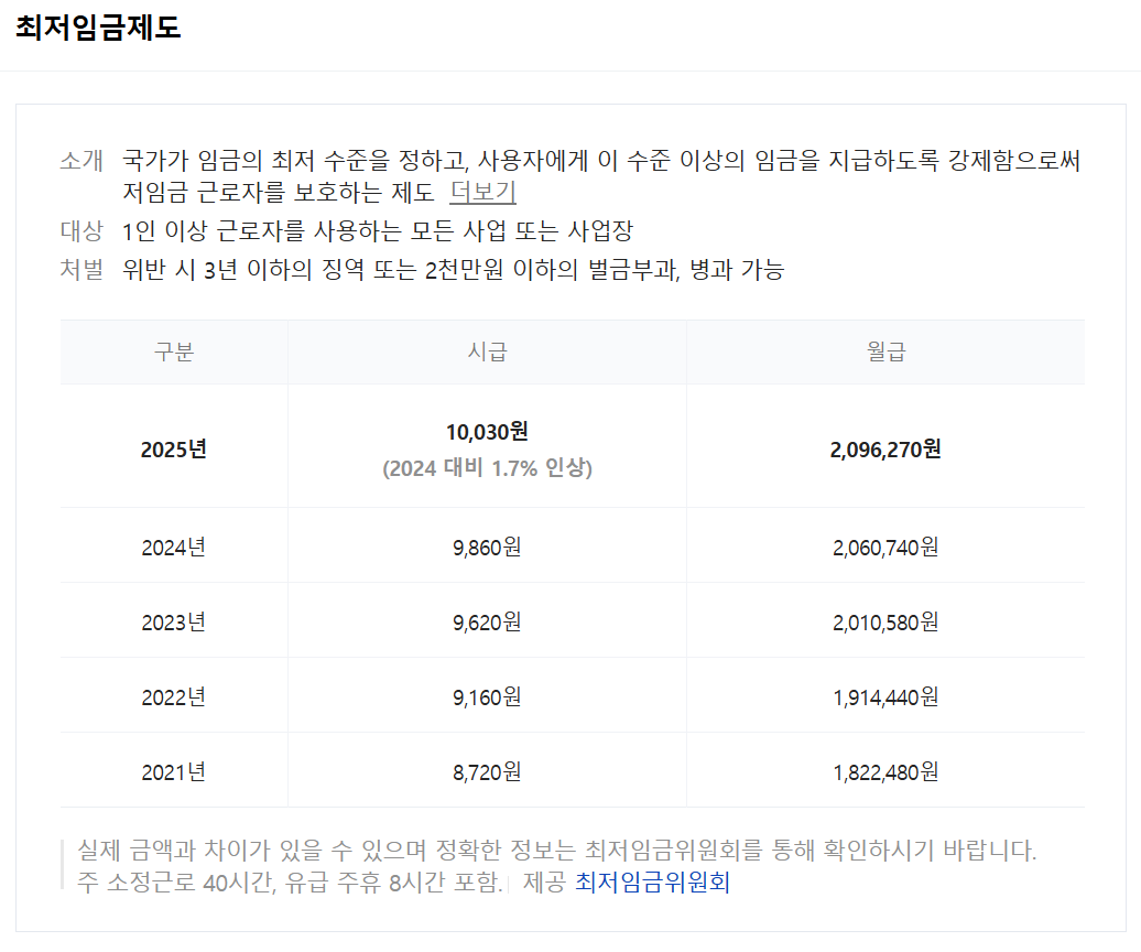 2025년 최저시급: 10,030원