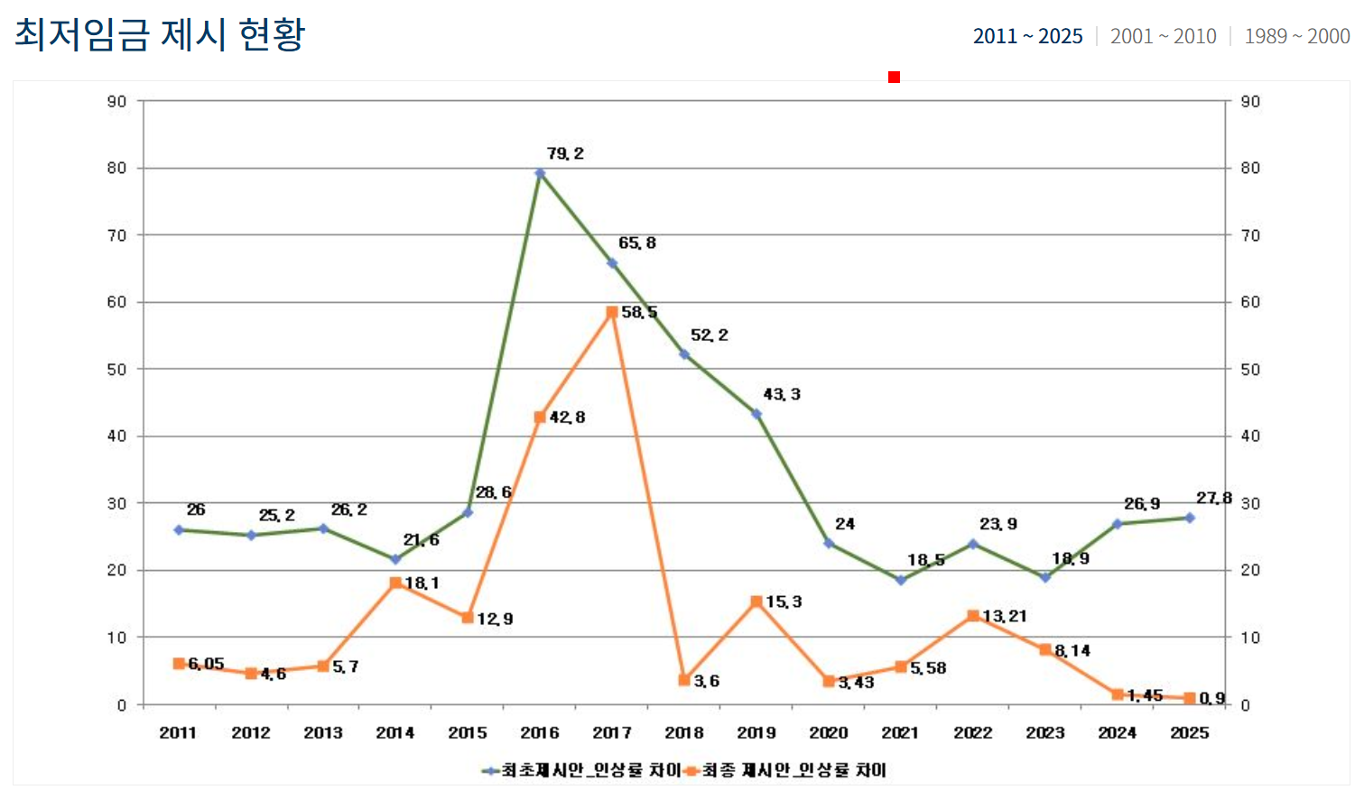 2025년 최저시급과 인상률