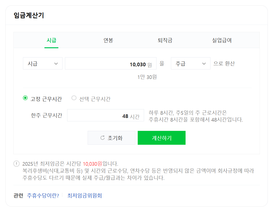 2025년 최저임금 기준 월급 및 연봉 계산