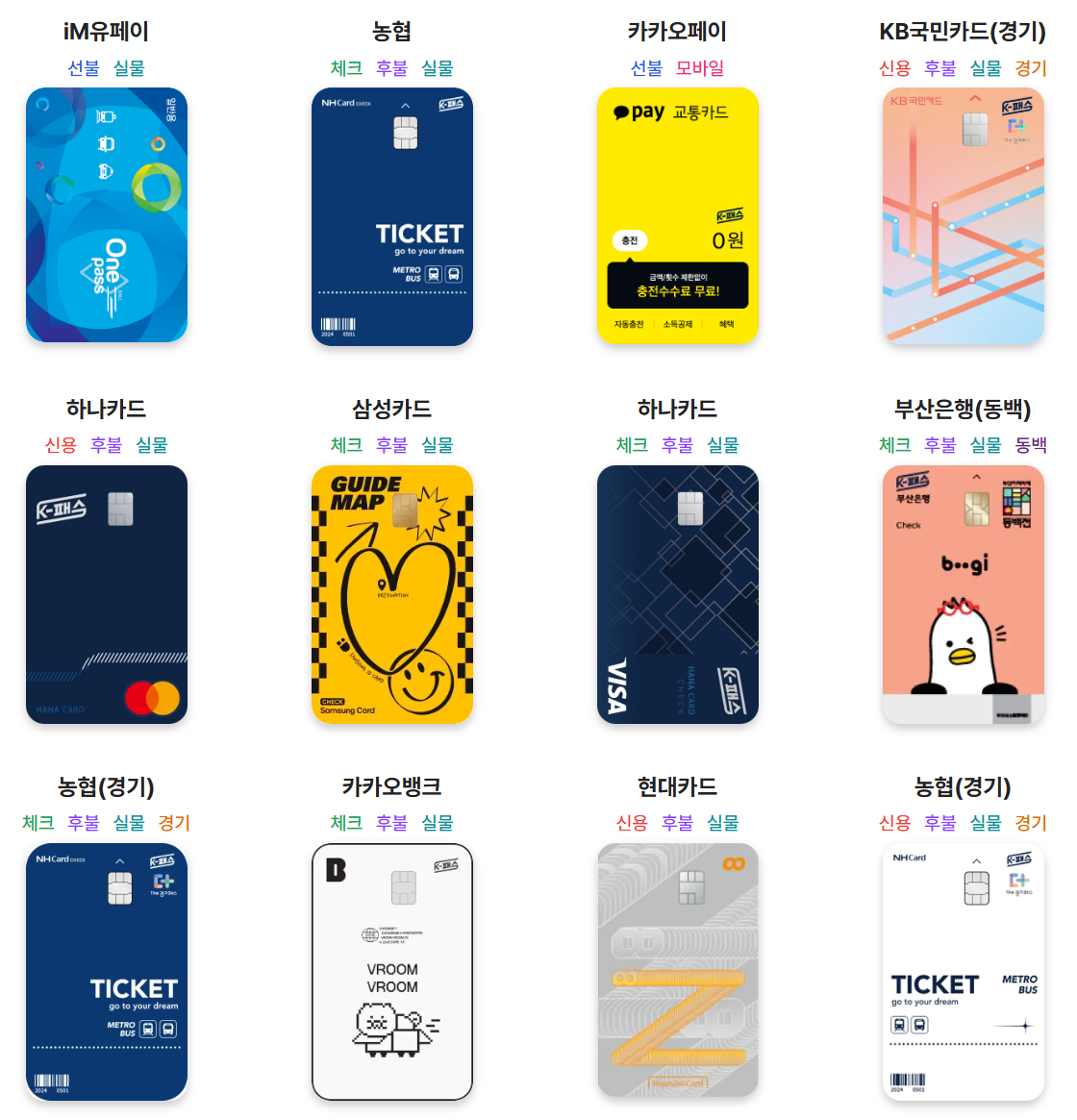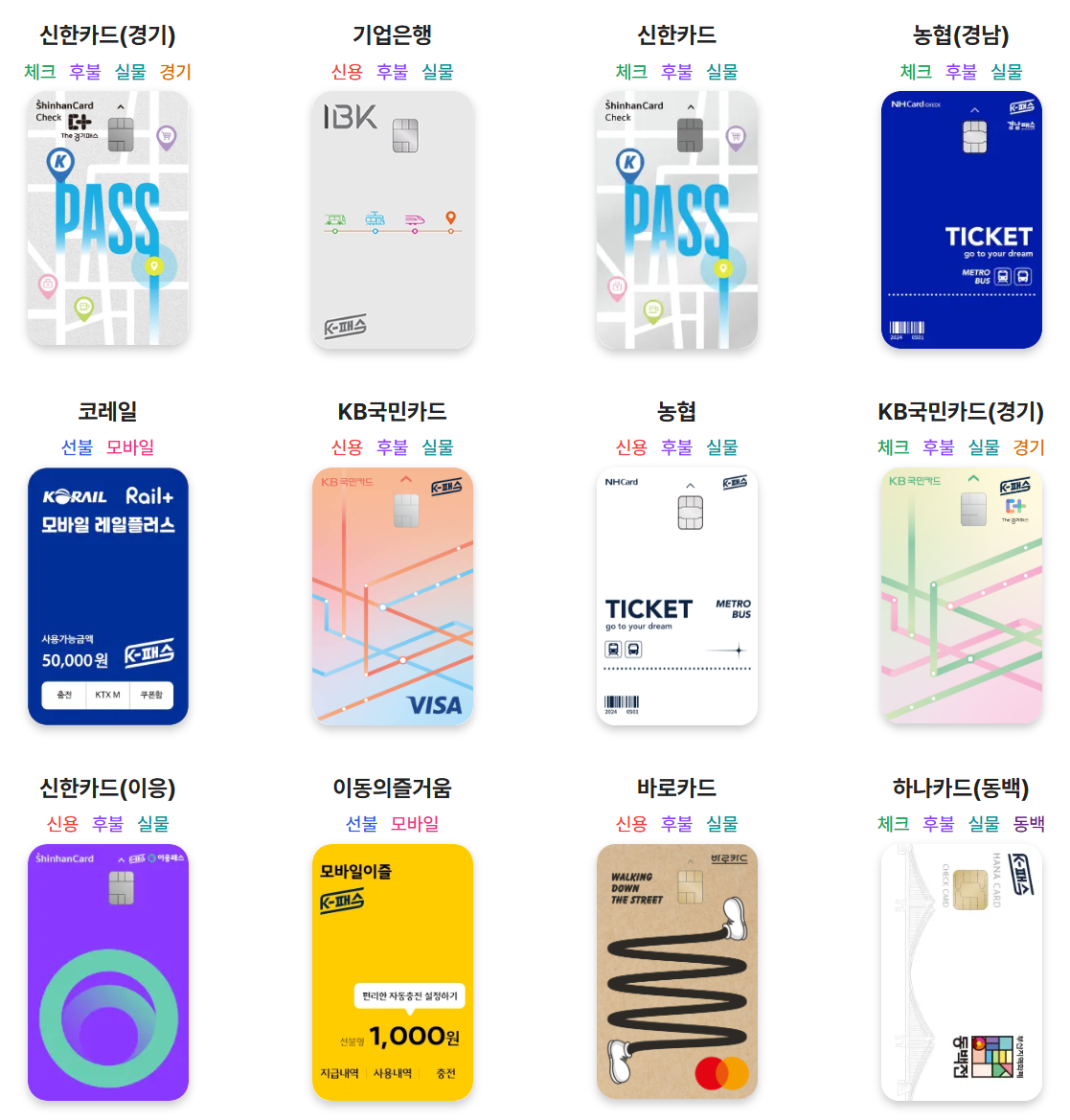 - 체크카드: KB국민, 농협, 신한, 하나, 우리은행 등에서 발급 가능