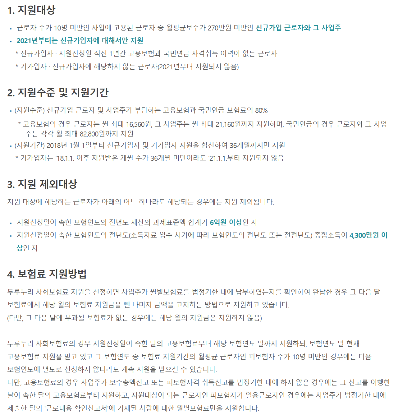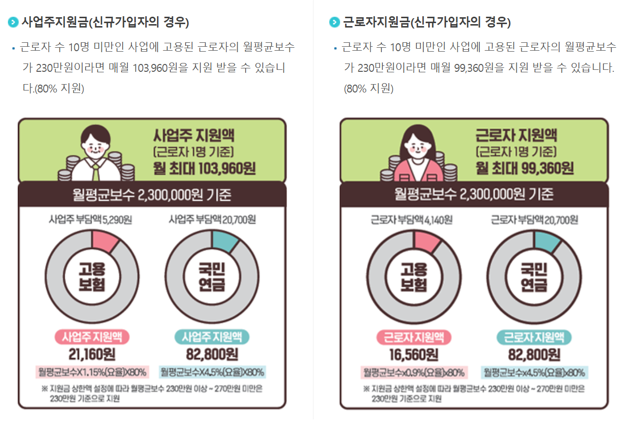 - 고용보험 및 국민연금 보험료의 80% 지원