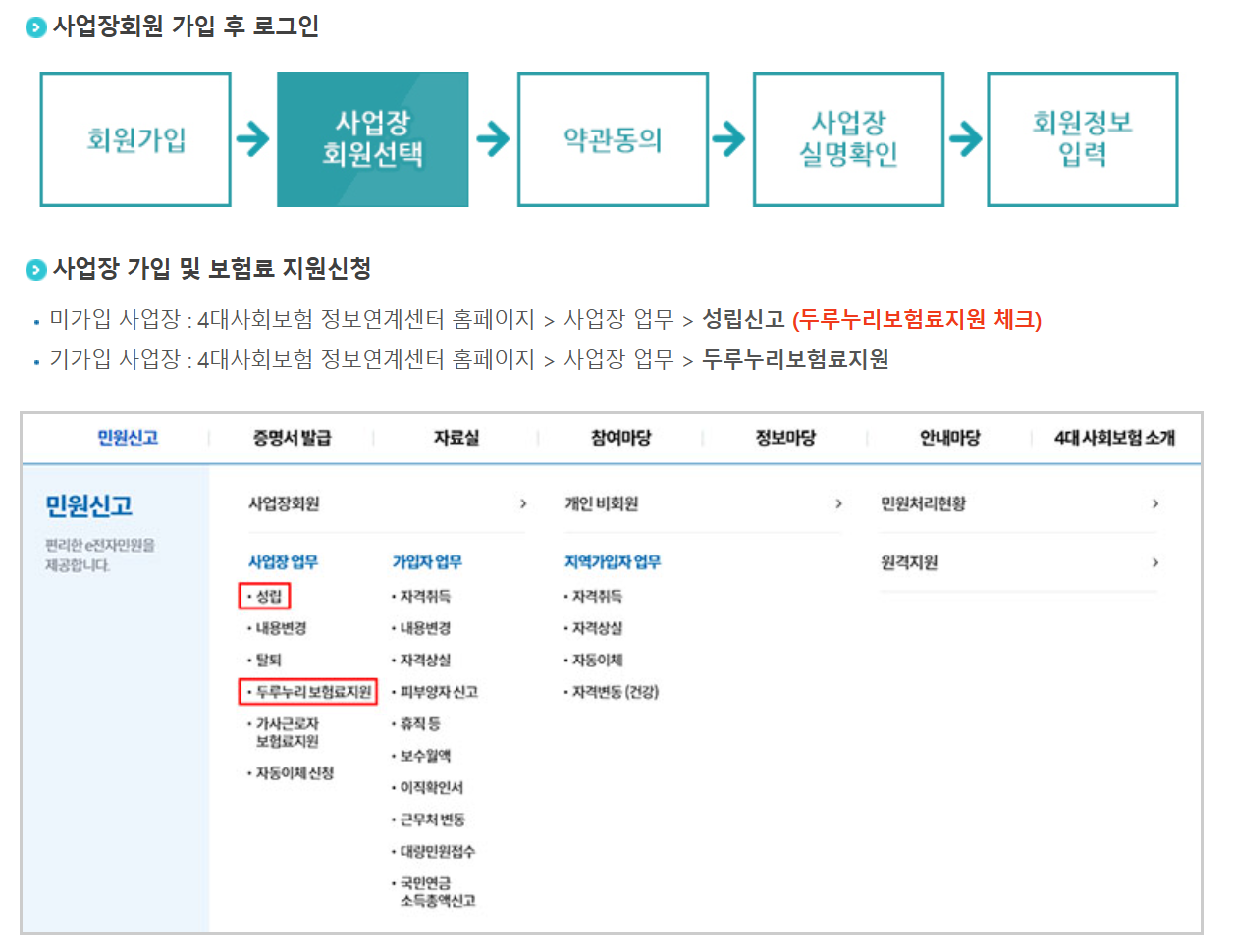 - 두루누리 사회보험료 지원 신청서 작성 후 제출