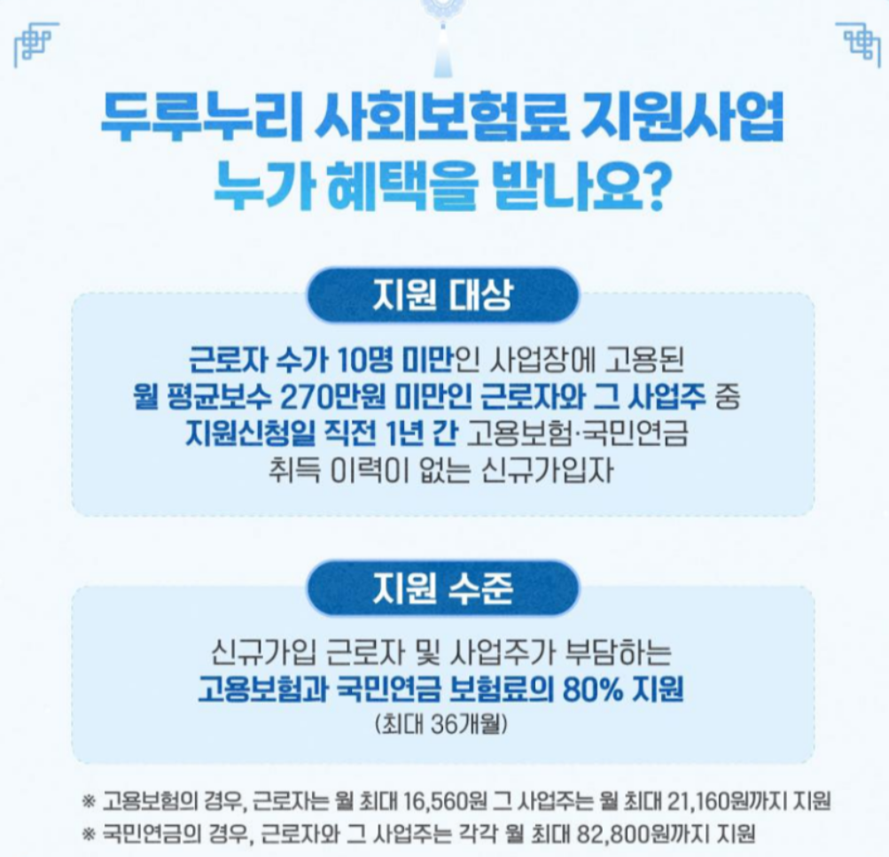 2025년 하반기부터 국민연금 보험료가 2.2% 인상된다는 발표가 나왔습니다. 연금 가입자라면 누구나 느낄 부담이지만, 정부에서는 이를 덜어주기 위해 두루누리 사회보험 지원금 제도를 운영하고 있습니다. 특히 10인 미만의 사업장을 운영하는 사업주와 근로자는 이 지원금을 활용하면 고용보험과 국민연금의 보험료 부담을 줄일 수 있습니다.