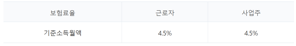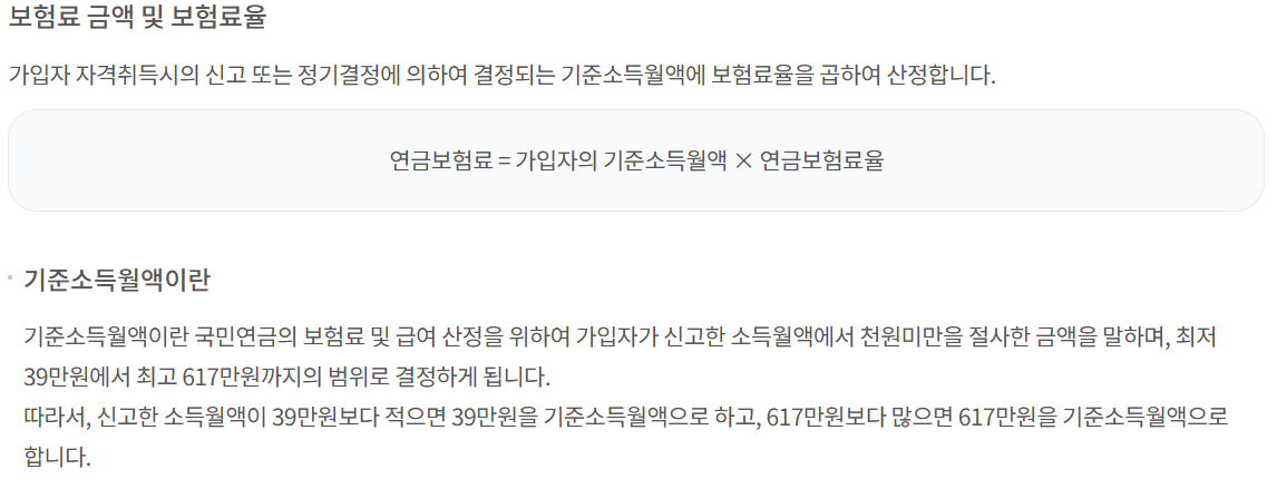 국민연금은 대한민국 국민이라면 의무적으로 가입해야 하고 일정 연령에 도달하게 되면 연금 혜택을 받을 수 있는 제도입니다. 기준 소득월액 9%의 요율이 적용되며 사업자와 근로자가 각각 반반씩 납부하게 됩니다.(2024년 7월 1일 기준 기준소득월액 39만원~617만원)