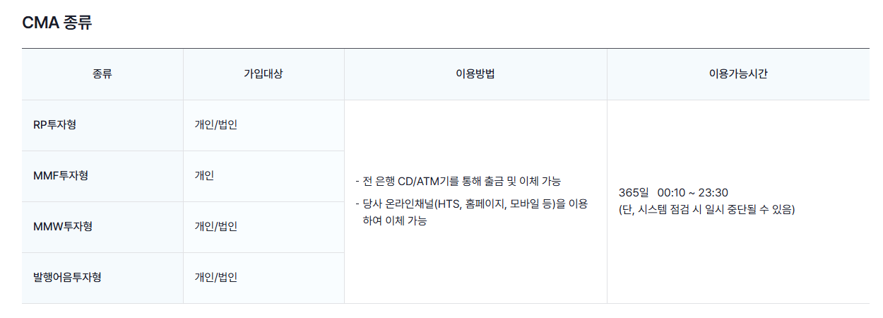 CMA 통장 종류